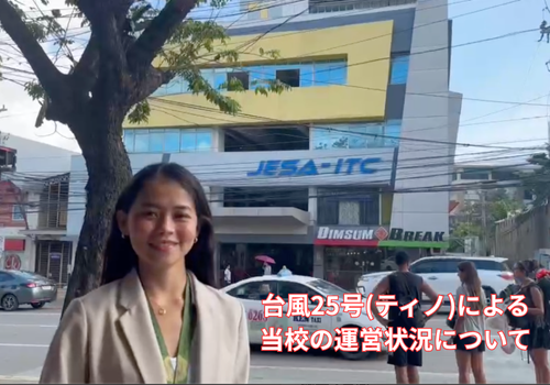 生徒様 各位 平素より当校をご利用いただき、誠にありがとうございます。 この度の台風25号(ティノ)の通過により、セブ島では広範囲にわたり浸水被害が発生し、多くの住民の方 […]